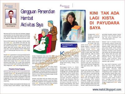 Kini istri saya tak cuma bebas dari semua keluhan di lehernya. Asam urat yang sebelumnya juga sering menyiksa, turut lenyap. Sungguh tiada terhingga rasa syukur dan bahagia kami sekeluarga atas karunia ini. Khasiat yang dibuktikan matol terhadap istri saya membuat kami sadar bahwa ramuan tersebut semestinya lebih dikenal oleh masyarakat luas, terutama yang tengah mengalami gangguan kesehatan. Karenanya, kini kami giat memperkenalkan matol di daerah tempat tinggal kami. Kiranya langkah ini dapat membantu orang-orang di sekitar kami, sehingga mereka semua dapat benar-benar merasakan khasiat yang luar biasa dari matol.